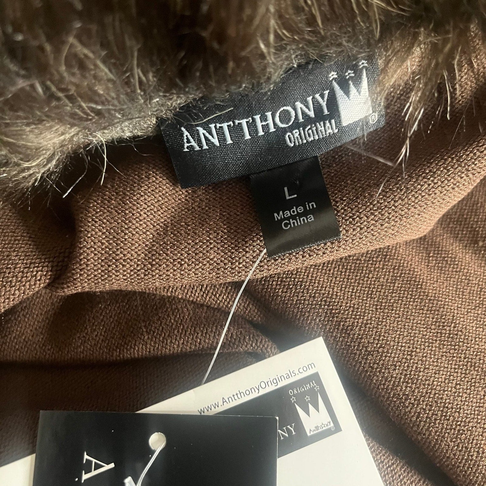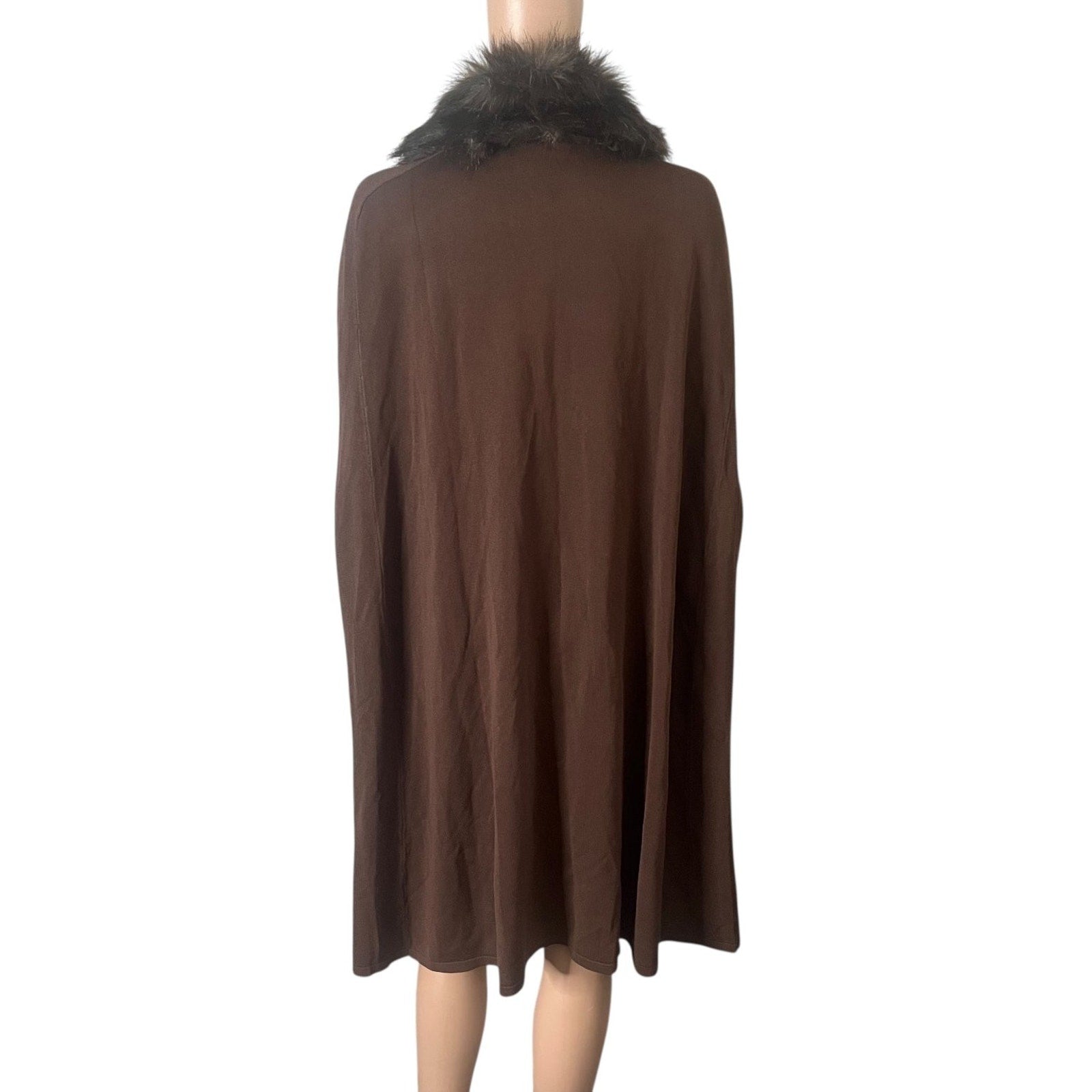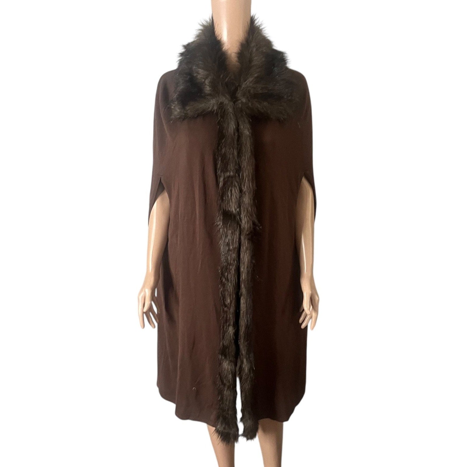 Elevate your wardrobe with this luxurious Antthony Original women's sweater cape, crafted in a rich brown hue that exudes warmth and elegance. Designed in a large size for a comfortable and flattering fit, this piece features an open-front style adorned with a plush fur trim along the collar and front edges, adding a touch of classic sophistication. The sleeveless design offers versatility, perfect for layering over your favorite long sleeve tops or dresses during cooler seasons.