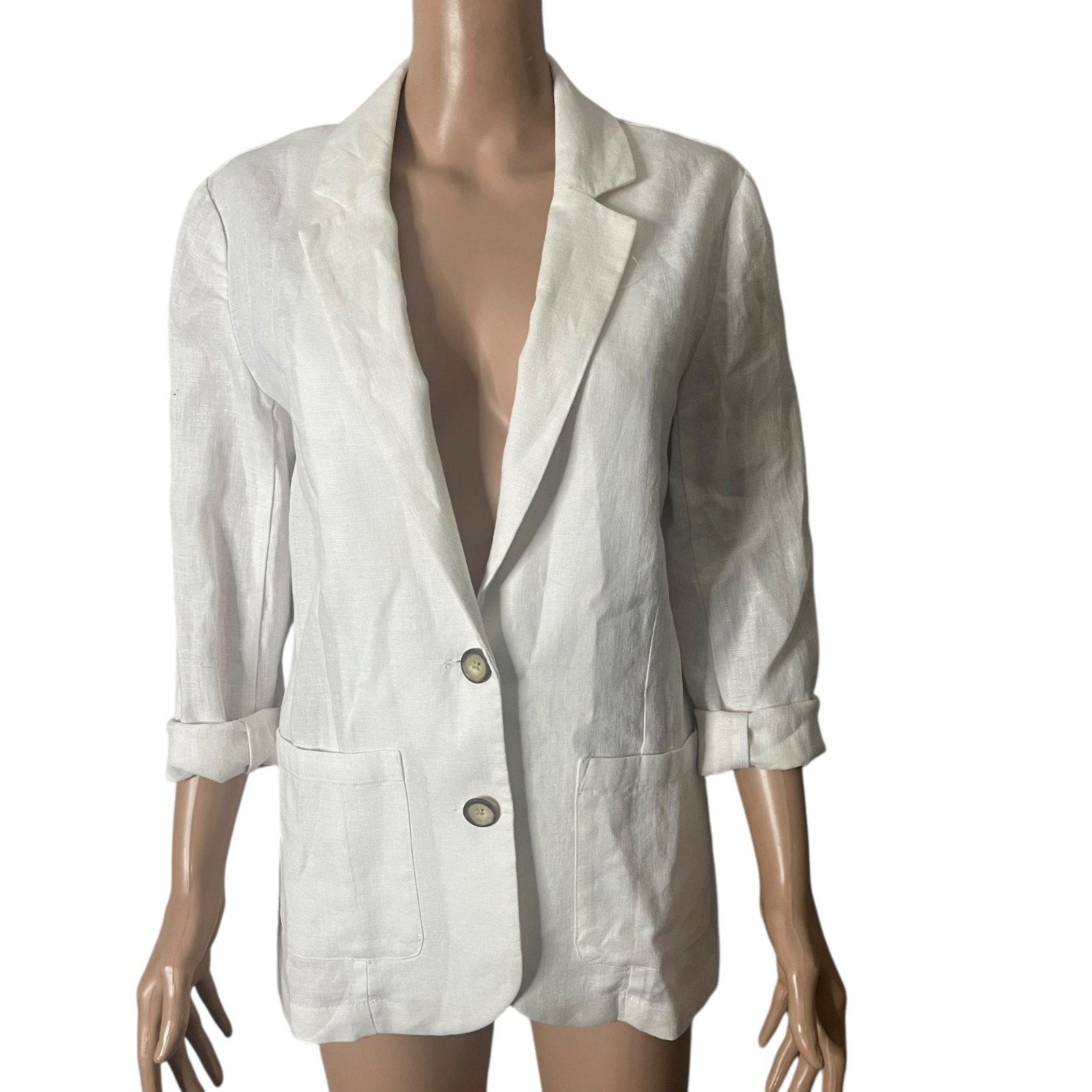 Elevate your wardrobe with this Garnet Hill linen blazer, combining sophistication and comfort. The lightweight material and tailored cut offer a refined yet breathable look, ideal for transitioning between seasons. Roll-up sleeves add a touch of casual elegance, making it a timeless addition to your closet.