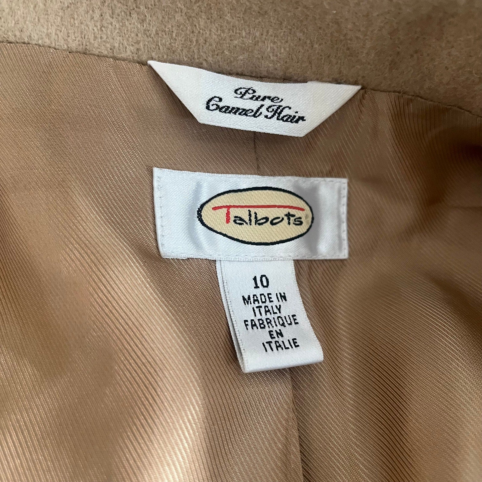 Talbots Camel Hair Wool Toggle Jacket Coat Tan Beige Women’s 10 Made in Italy