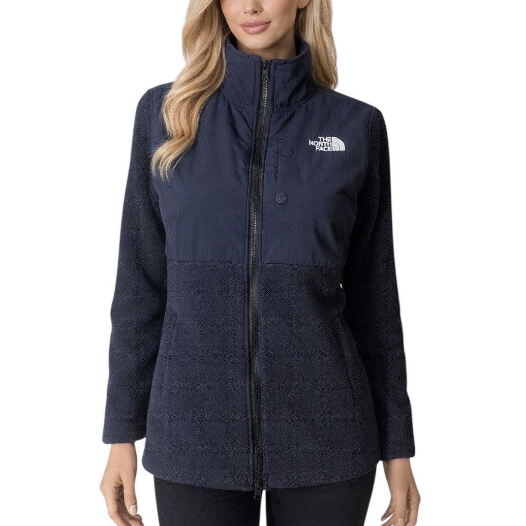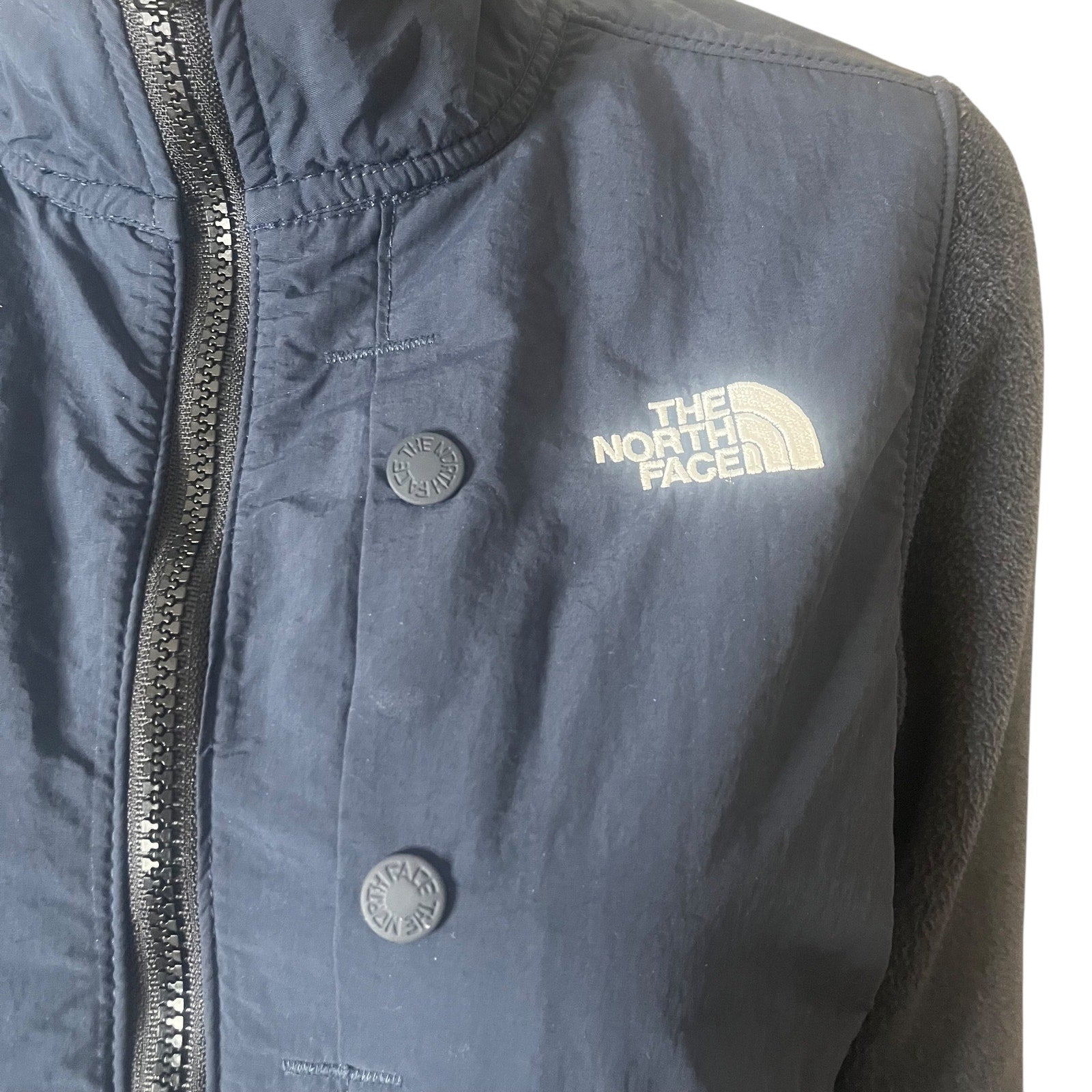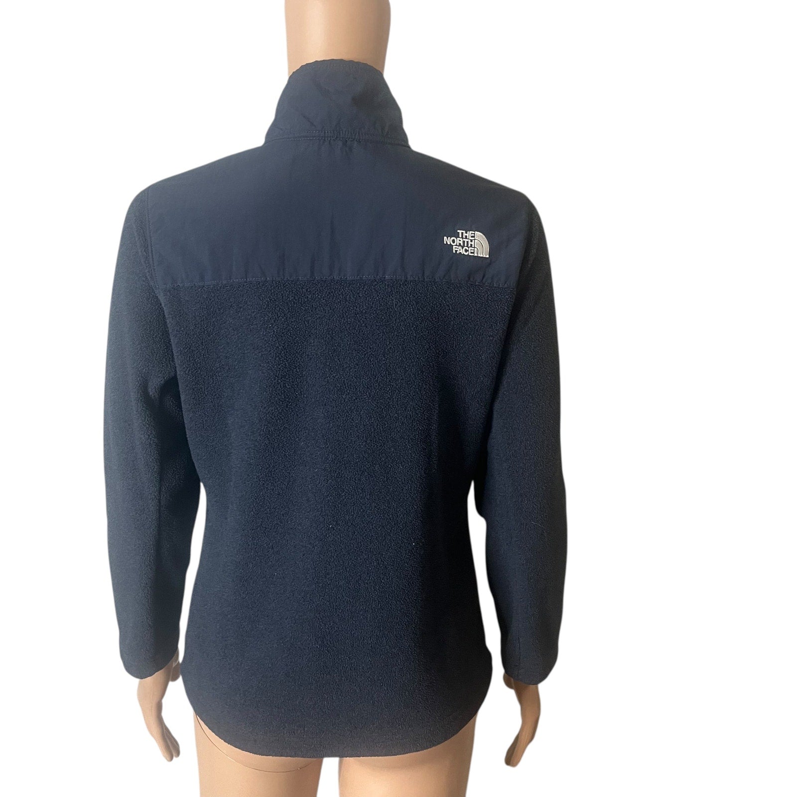 Snuggle up in this pre-owned The North Face navy blue fleece jacket! This full-zip jacket features the iconic logo and is perfect for layering or wearing on its own. It is in good condition and ready for new adventures.