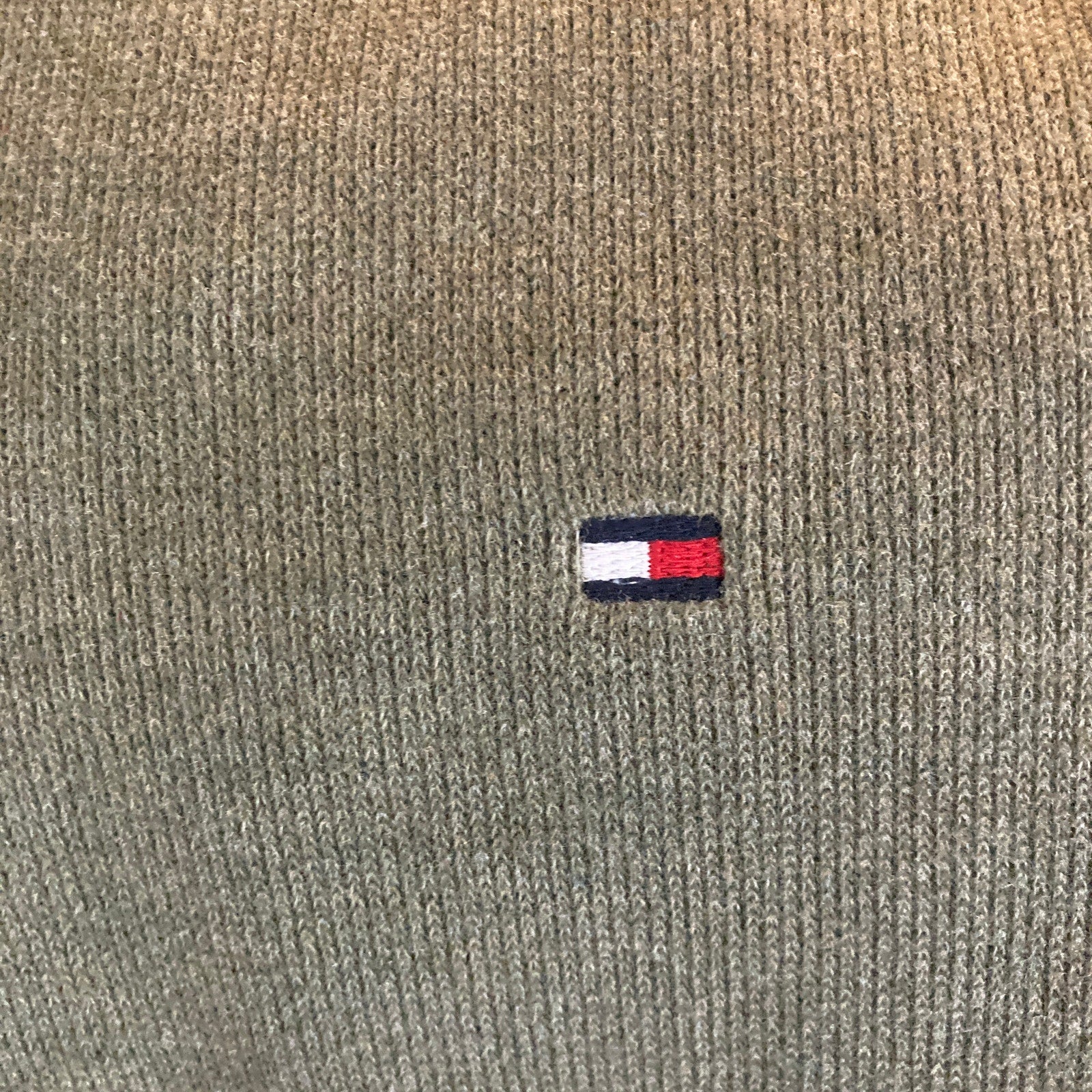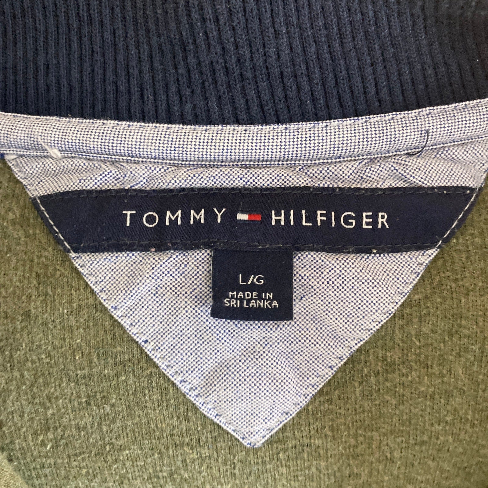Tommy Hilfiger Sweatshirt Mens Large Olive Green Zip Neck