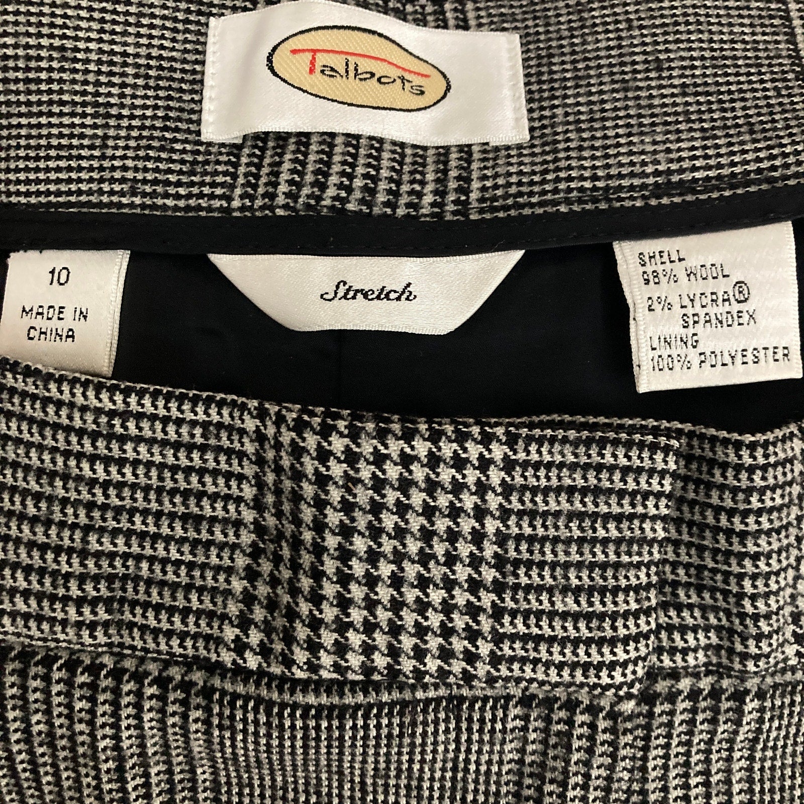 Talbots Pants Womens Size 10 Black Wool Blend Black White Plaid